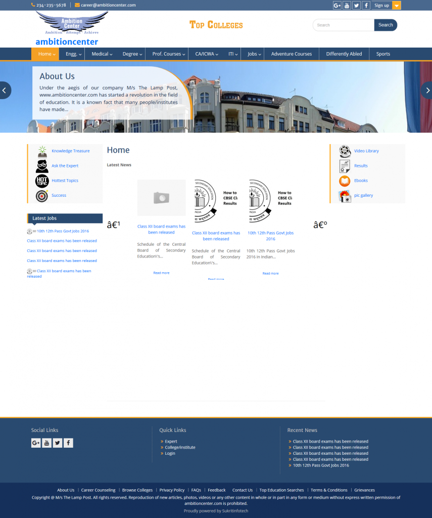 Under the aegis of our company M/s The Lamp Post, www.ambitioncenter.com has started a revolution in the field of education. It is a known fact that many people/institutes have made education a business in India. Our website is committed to combat such negative attitudes in the field of education and dedicated to provide equal opportunities to all the students in various fields of education, so that they can pursue a career of their own choice easily. In the long run, the major objectives of our company are:
